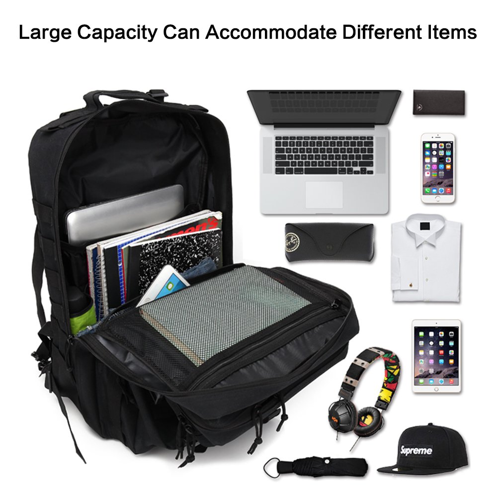- Système MOLLE - Nombreux points de fixation à l'extérieur du sac à dos tactique pour ajouter des pochettes, conçus pour être utilisés avec d'autres équipements, vous pouvez charger des poches, un sac de bouteille d'eau, des kits d'accessoires et autres. journée assault pack bug out bag sac à dos combat molle sac à dos
